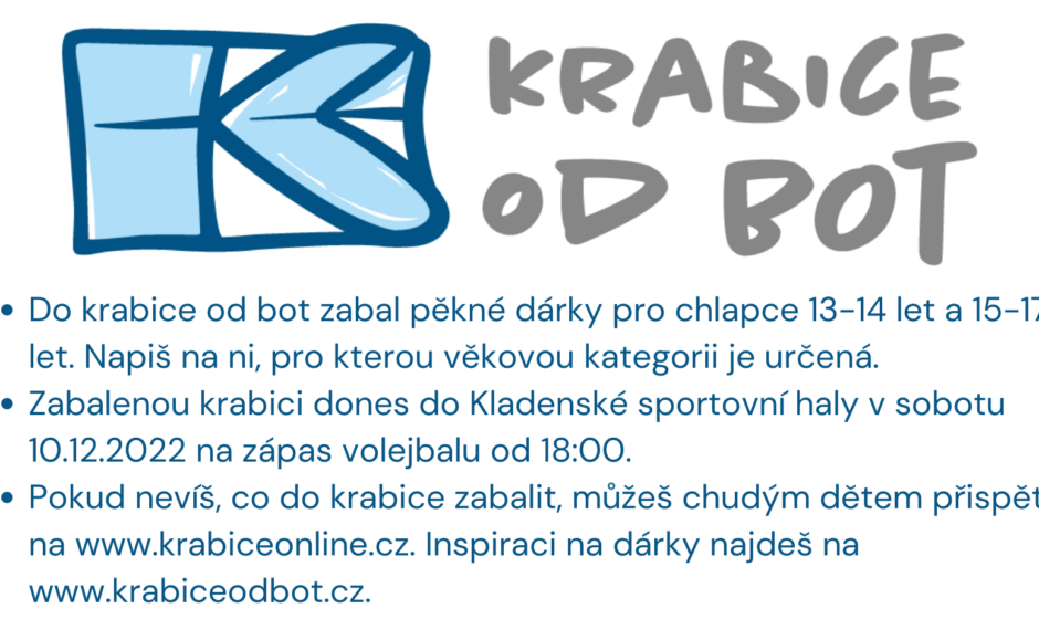 Jak bylo nastíněno, předposlední domácí zápas roku 2022 klubu Kladno volejbal cz bude věnován dětem ze znevýhodněných rodin. Ve spolupráci s Diakonie CCE proběhne v rámci zápasu 15. kola UNIQA extraligy sbírka vánočních dárků pro chlapce ve věkové skupině 13-17 let. Charitativní akce Krabice od bot rozjela 12. ročník sbírky dárků pro děti ohrožené chudobou a kladenský volejbal chce být její součástí.